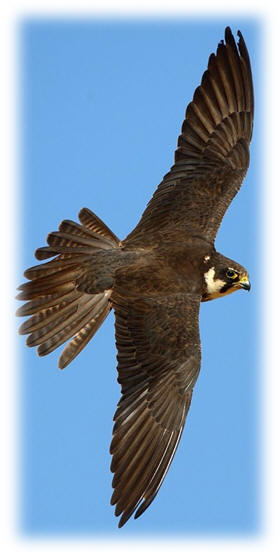 cabeza plana al frente, su pico encorvado, su mirada penetrante y alerta, su